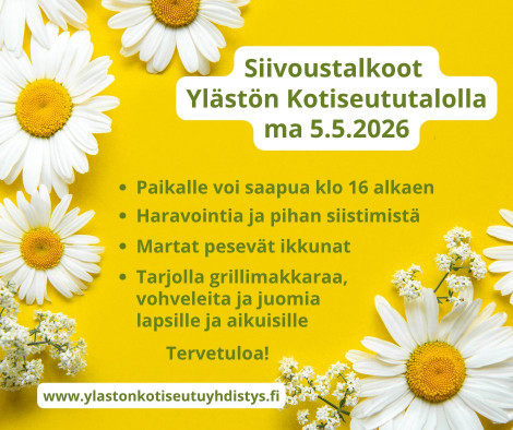 Paikalle voi saapua klo 16 alkaen. Haravointia ja pihan siistimistä. Martat pesevät ikkunat. Paistetaan vohveleita ja grillataan makkaraa. Tervetuloa!