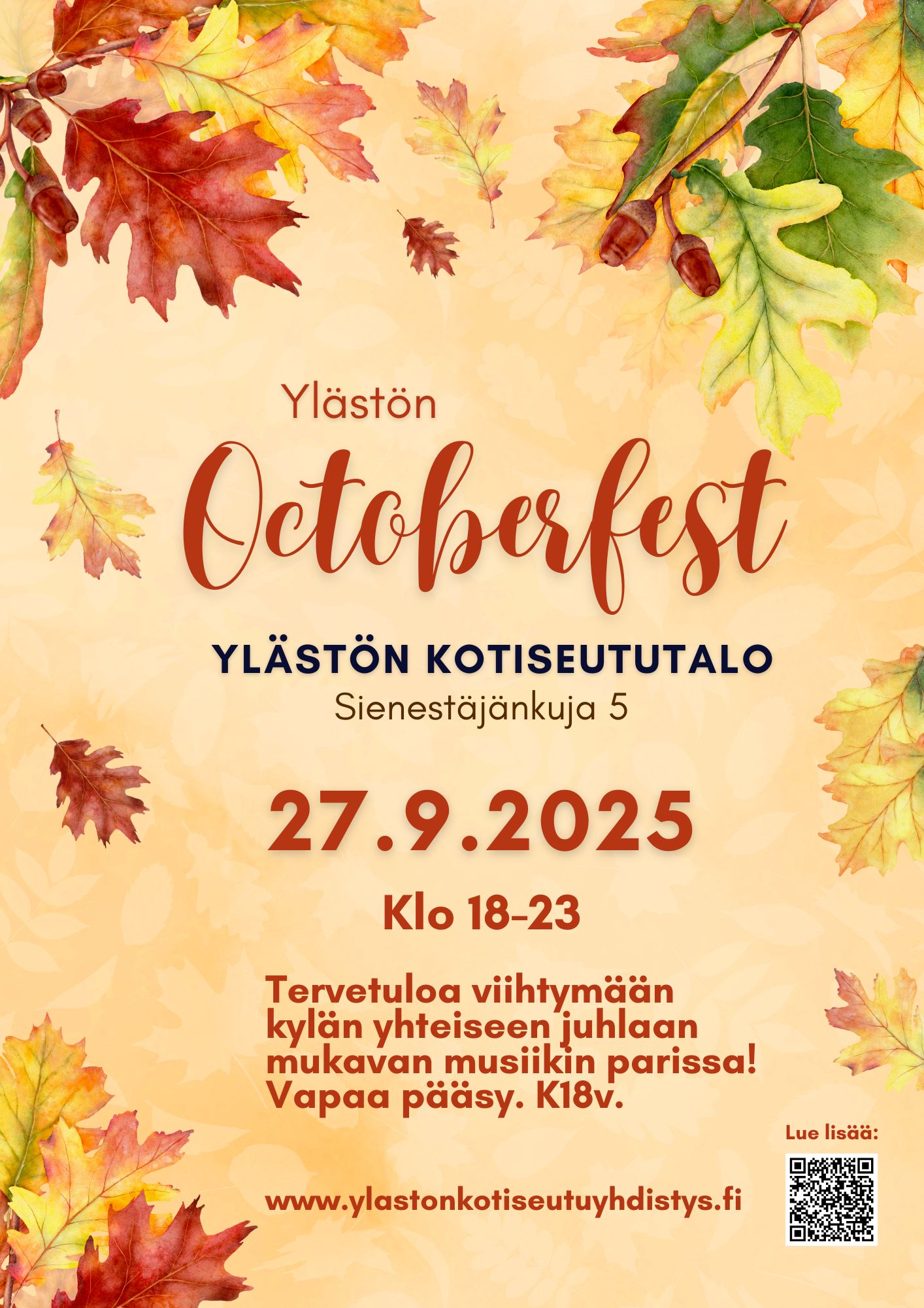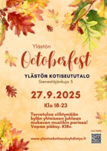 Ylästön Oktoberfestiä vietetään jälleen lauantaina 27.9.2025 klo 18–23 Ylästön Kotiseututalolla, Sienestäjänkuja 5.